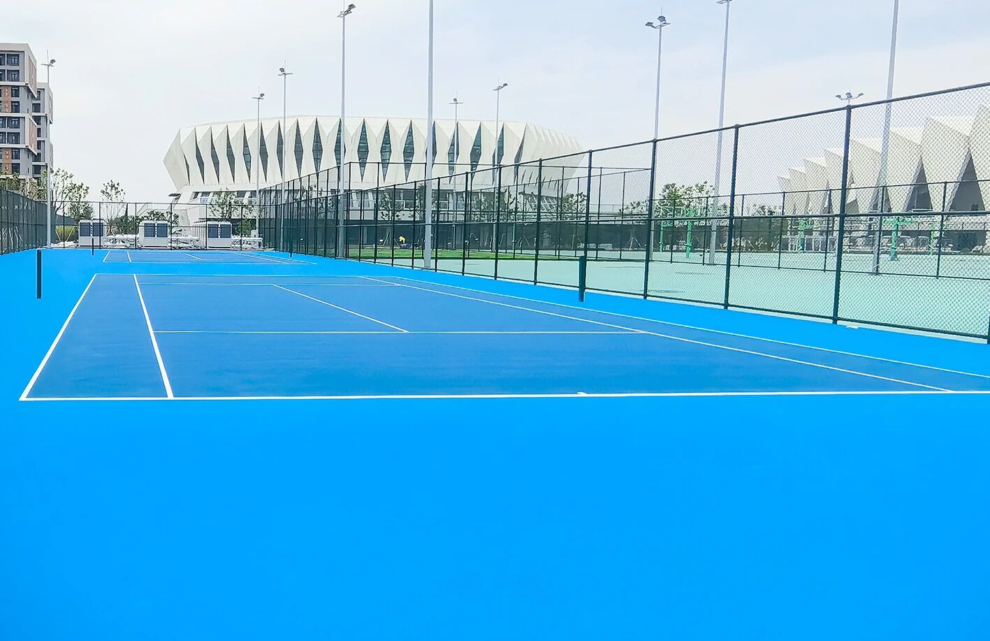 再加上2片丙烯酸网球场、1片5人制足球场,田径、足球、篮球等运动需求全覆盖。